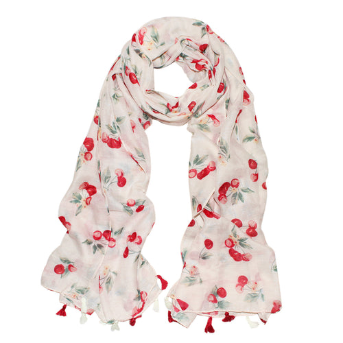 Premium Cherry Print Cotton Blend Tassel Scarf Wrap