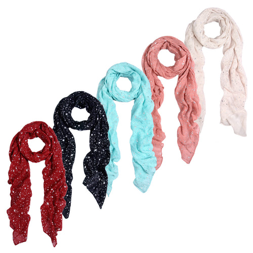 Solid Color Stars Print Stardust Glitter Scarf - Different Colors Available
