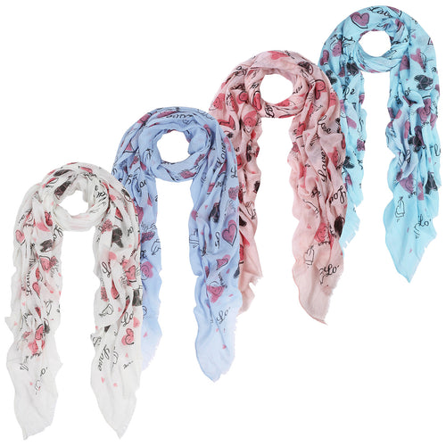 Love Heart & Happiness Print Frayed End Scarf Wrap - Diff Colors Avail