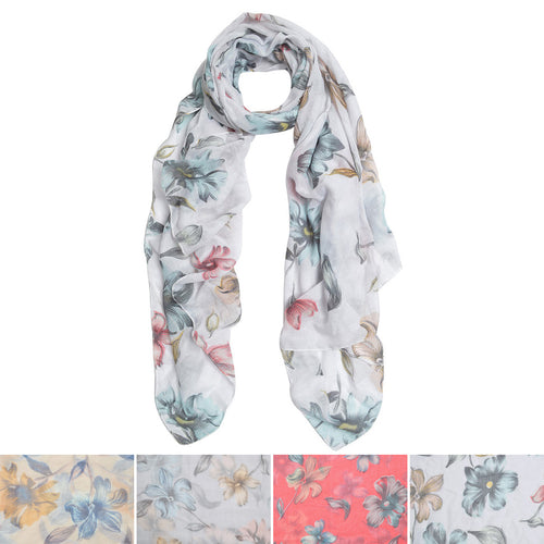 Elegant Viscose Artistic Floral Print Fashion Scarf Wrap