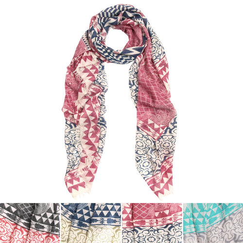 Elegant Bohemian Paisley Floral Tribal Aztec Print Frayed Edge Scarf Wrap