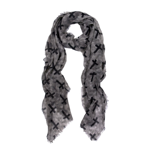 Vintage Frayed Edge Cross Design Scarf