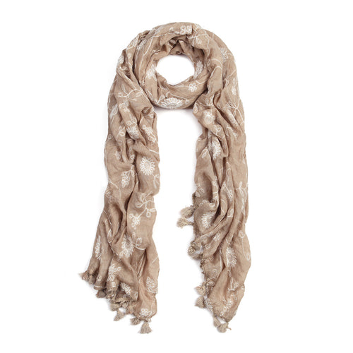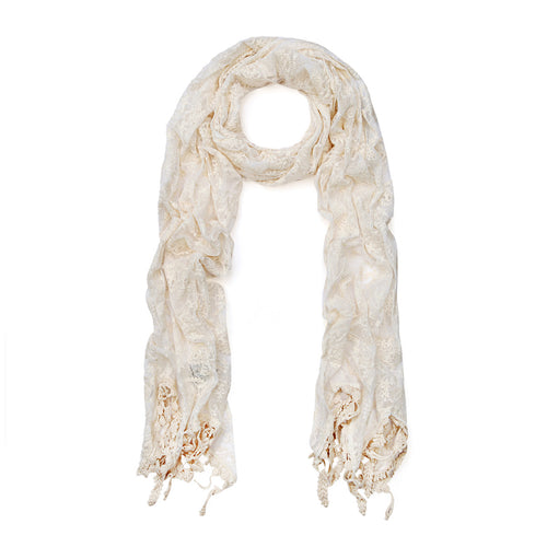 Elegant Pure Cotton Lace Floral Scarf