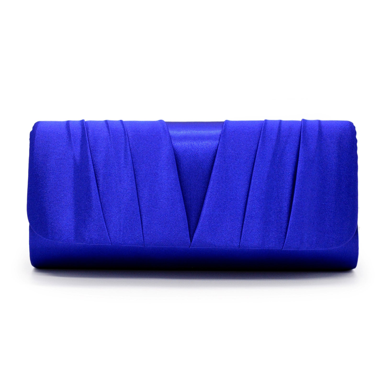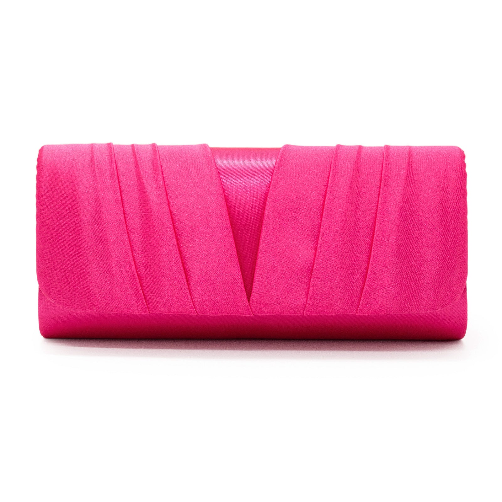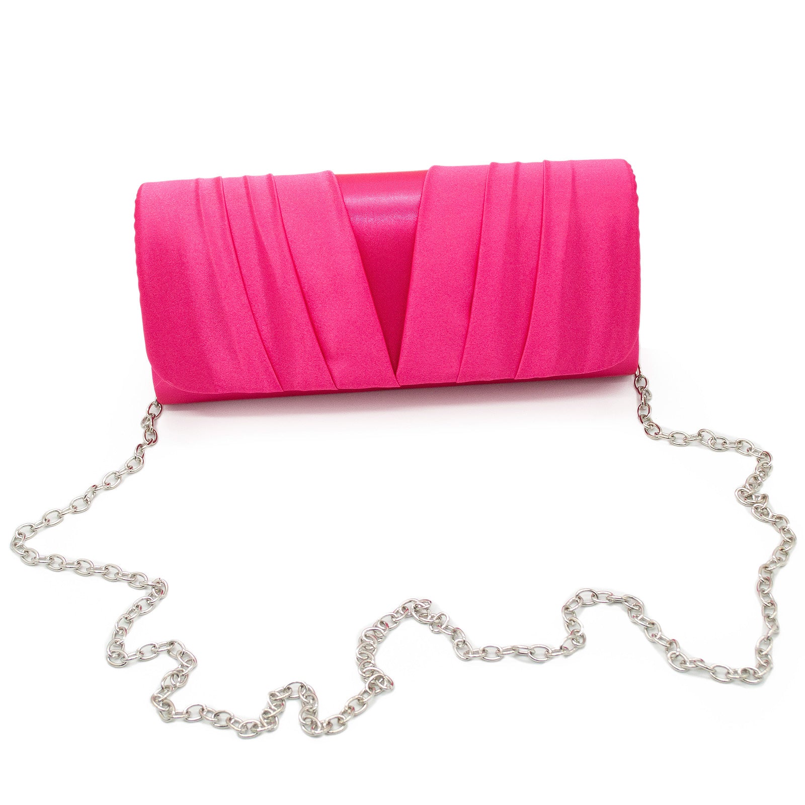 This high quality evening clutch is both elegant and stylish. Premium solid color pleated satin fabric, makes it trendy yet classy. Fully lined with magnetic-flap closure to keep your valuable items secure. There is an inner wall pocket for your ID or credit cards. Removable hideaway shoulder chain strap with 22" drop is provided to make it a shoulder bag or a crossbody bag. Compact and functional, stunning and versatile. The size is 8.5" (L) x 4" (H) x 2" (W). Elegant design and luxury feel. A must have accessory for the perfect night out.