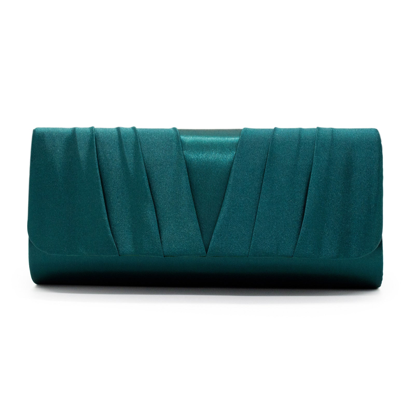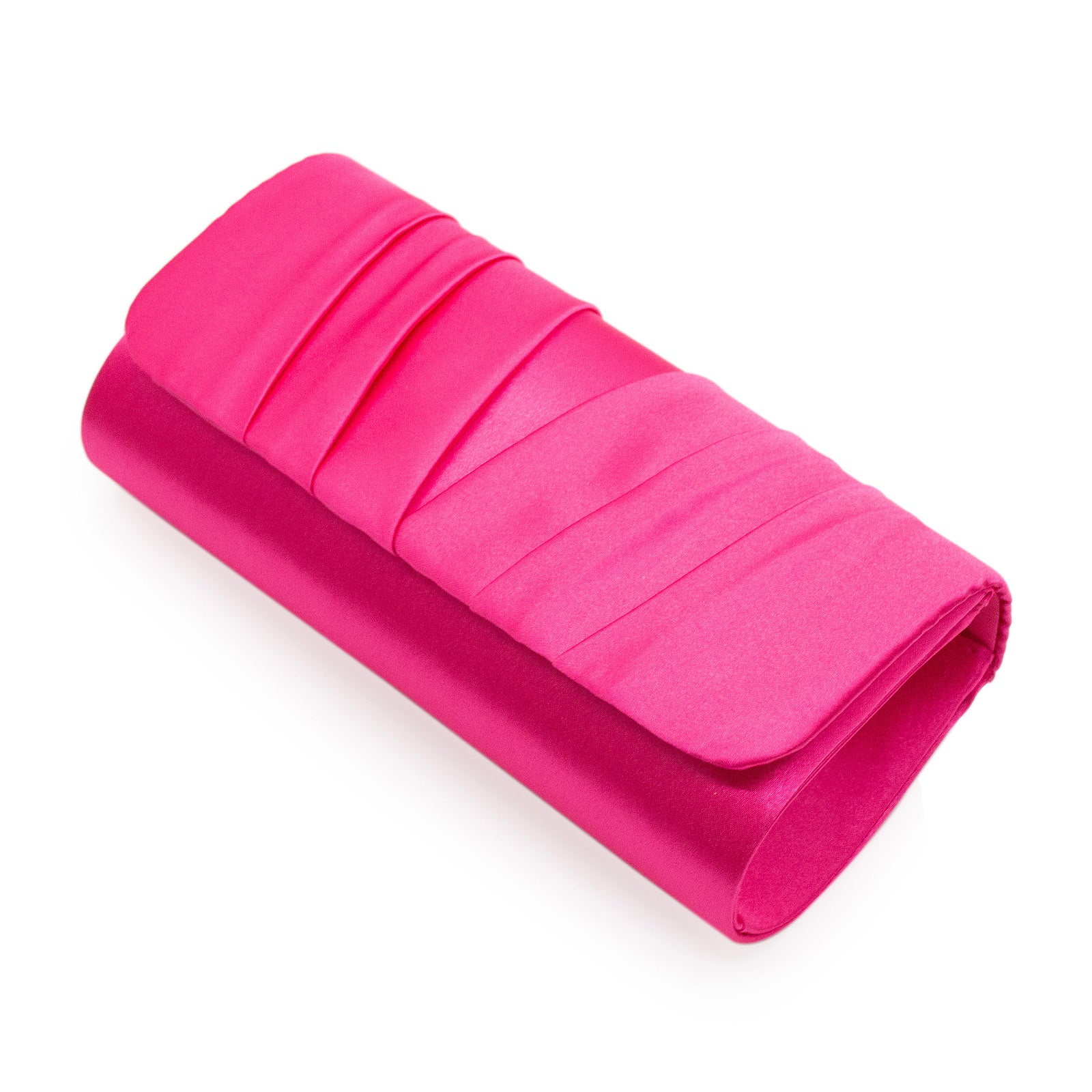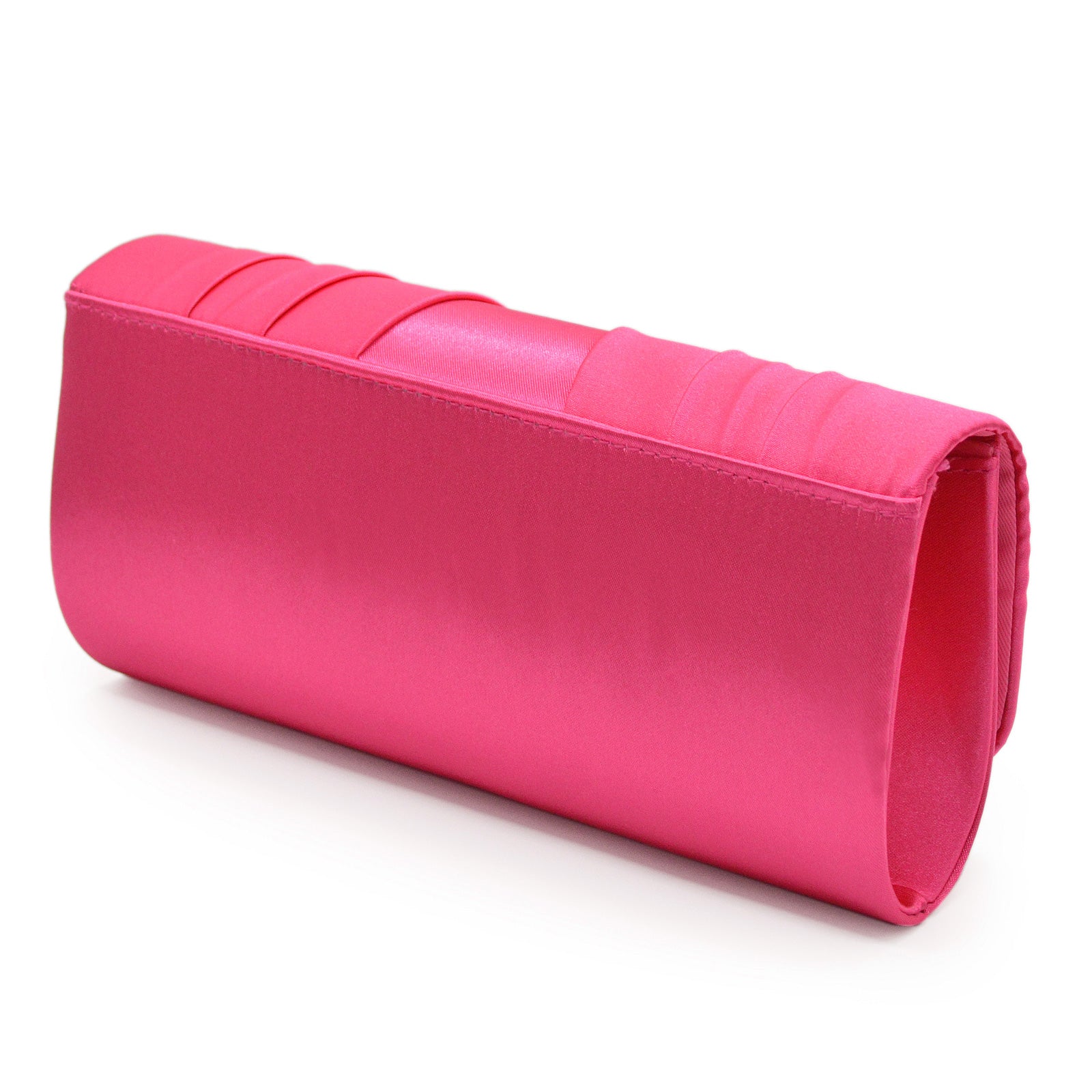 This high quality evening clutch is both elegant and stylish. Premium solid color pleated satin fabric, makes it trendy yet classy. Fully lined with magnetic-flap closure to keep your valuable items secure. There is an inner wall pocket for your ID or credit cards. Removable hideaway shoulder chain strap with 22" drop is provided to make it a shoulder bag or a crossbody bag. Compact and functional, stunning and versatile. The size is 8.5" (L) x 4" (H) x 2" (W). Elegant design and luxury feel. A must have accessory for the perfect night out.