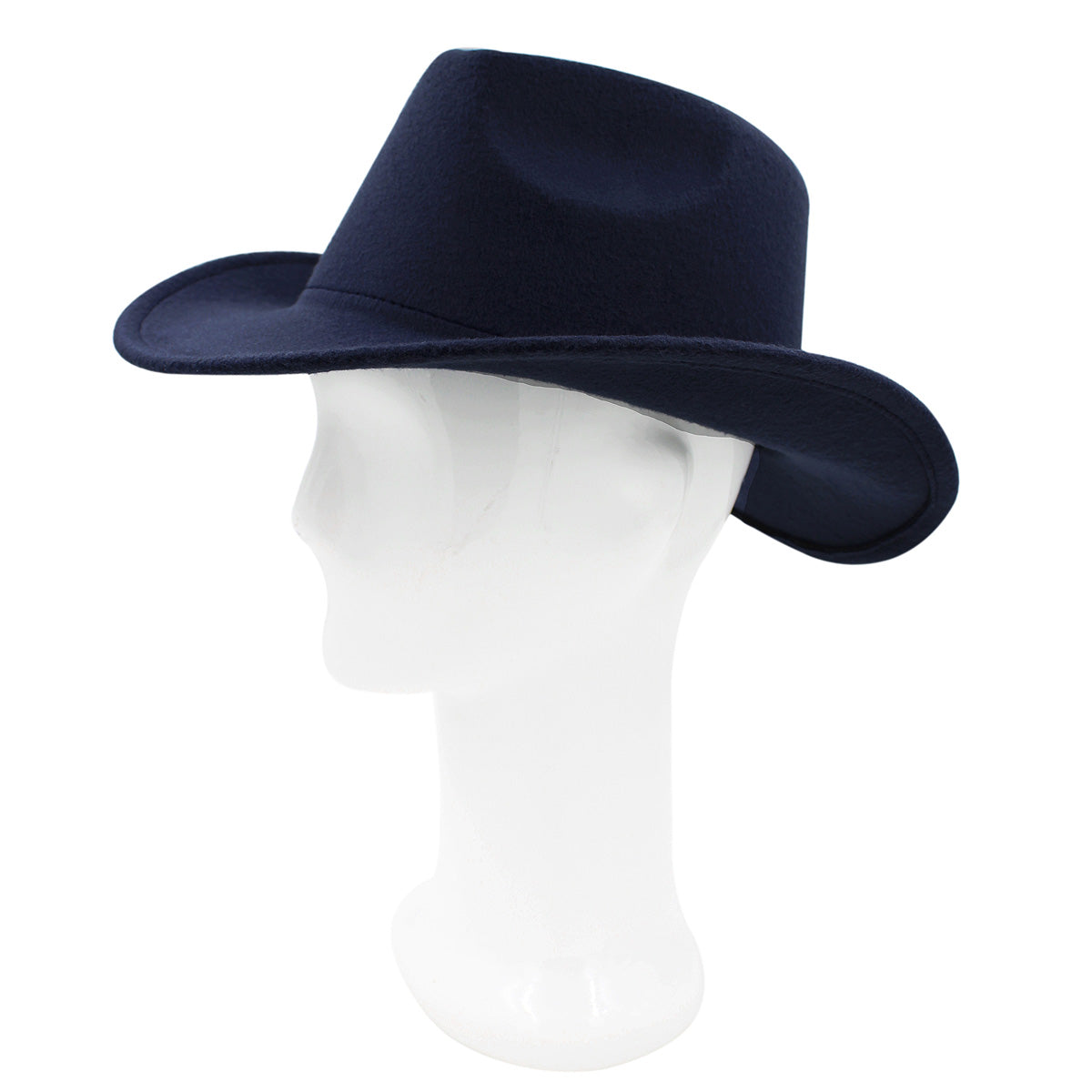 This deluxe wide brim cowboy hat is a must have fashion accessory of the season. Classy yet modern with solid color faux wool felt material. High quality and durable construction. Lightweight and comfortable. Inside wide sweatband and ribbon string to help adjust the fit. Brim width is 3". Timeless design, never go out of style. Casual luxury at its best. It's the perfect accessory to make your own fashion statement and accent your outfit.